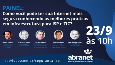 Evento, dirigido para público técnico e gestores de redes, contará com a participação de especialistas como Cristiane Hoepers, gerente geral do CERT.br/NIC.br, Gilberto Zorello, coordenador do Programa por uma Internet mais segura do NIC.br; klaus Steding-Jessen, gerente técnico do CERT.br/NIC.br, e Alexis Aguirre, diretor de cybersegurança da AL da Unisys. Mediação será do diretor da Abranet, Dorian Lacerda.