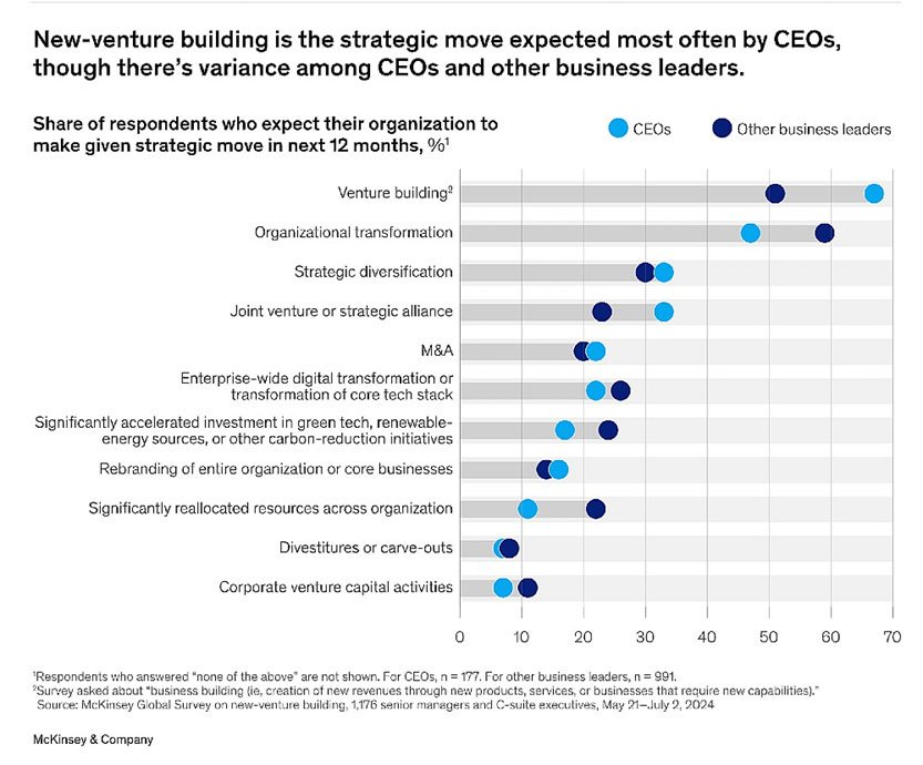 Mais da metade dos CEOs colocam a construção de novos negócios como uma de suas principais prioridades. Como parte da estratégia de crescimento corporativo, o lançamento de iniciativas no modelo semelhante ao de startups preenche a lacuna que a velocidade e escala do P&D não comportam. Para acessar a inovação, ter um programa de “venture building” é um caminho. O outro é investir em “venture factory”.