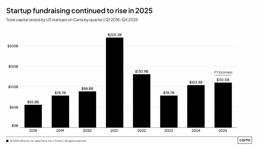 Nada como 145 slides lotados de dados para entender o rumo que o ecossistema de capital de risco para startups de tecnologia deve tomar em 2026. O relatório de final de ano da Carta “State of Startups 2025”, publicado há pouco mais de uma semana, é uma janela com vista panorâmica para o modelo mental e apetite de investimentos do setor.