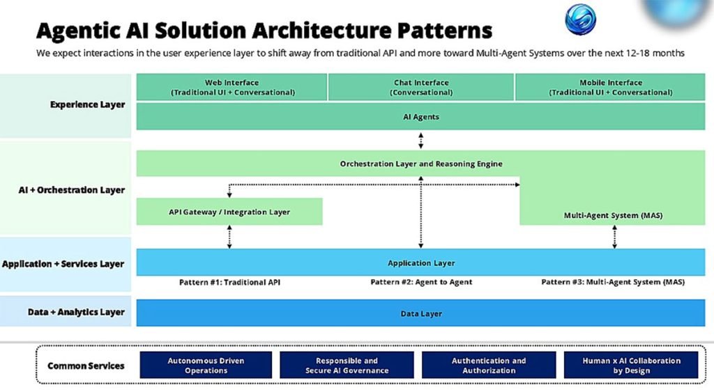A adoção da IA Agêntica exigirá mudanças na arquitetura dos sistemas de RH. A Deloitte propõe o uso de sistemas multiagentes (MAS), com diferentes camadas: